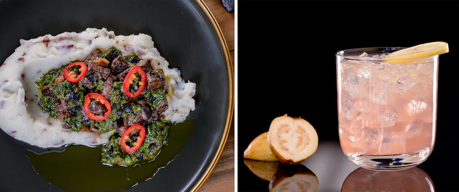 with roasted garlic-gruyère smashed potatoes and black garlic chimichurri